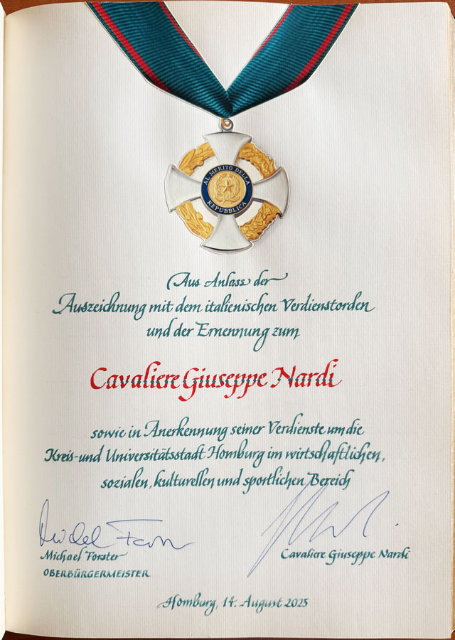 Cavaliere Giuseppe Nardi trägt sich an seinem Geburtstag ins „Goldene Buch“ der Stadt ein