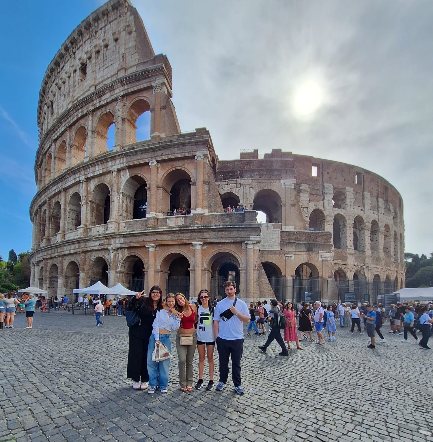 Ausflug in die italienische Hauptstadt Rom: (v. l. n. r.) Jessica Chu und Julia Klatt vom Homburger Jugendbeirat, Giulia Trivelloni und Camilla Di Donato vom Jugendbeirat Albano Laziale sowie Nils Bernhard (Homburger Jugendbeirat).