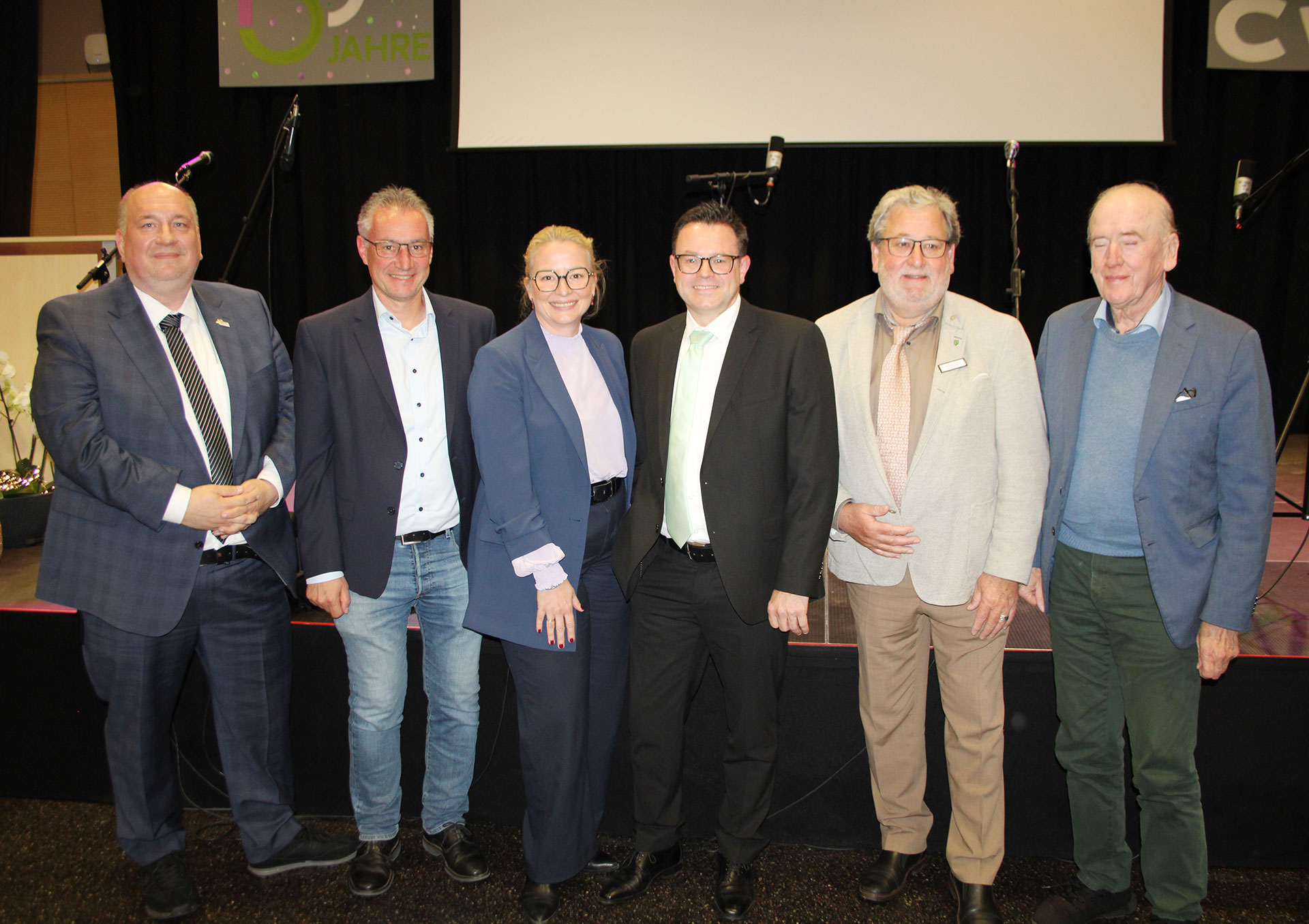 Zu den Rednern des Abends gehörte auch Bürgermeister Manfred Rippel, der wie andere die Besonderheiten der Schule betonte und gerade auch die Leistungen, die von den Lehrerinnen und Lehrern im außerschulischen Bereich erbracht würden, hervorhob. Gerade diese Angebote, so der Bürgermeister, könnten für die Entwicklung junger Menschen und auch für die künftige Ausrichtung unserer Gesellschaft besonders wichtig sein. Als Beispiele nannte er den bilingualen Zweig, das Engagement als UNESCO-Projektschule, den Austausch mit Schulen in Polen, Frankreich, England und den USA, die Bildung im Bereich der Menschenrechte, der Demokratie sowie des interkulturellen Lernens.