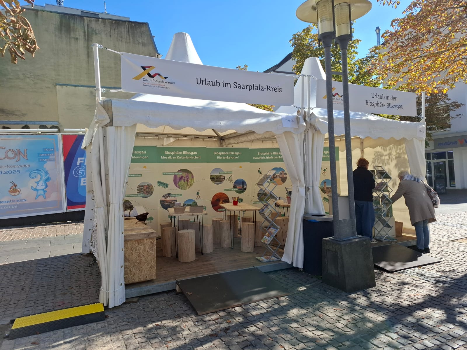 Darüber hinaus nutzten zahlreiche Besucherinnen und Besucher die Gelegenheit, sich am Glücksrad der Tourismus Zentrale Saarland zu versuchen – zu gewinnen gab es unter anderem Erlebnisse aus dem Saarland, darunter Kombitickets für das Römermuseum und die Schlossberghöhlen, kleine Mitbringsel und kulinarische Überraschungen. Das Informationsmaterial zu den touristischen Angeboten Homburgs und des Biosphärenreservats Bliesgau fand reißenden Absatz: Bis zu 1.000 Broschüren wurden verteilt.