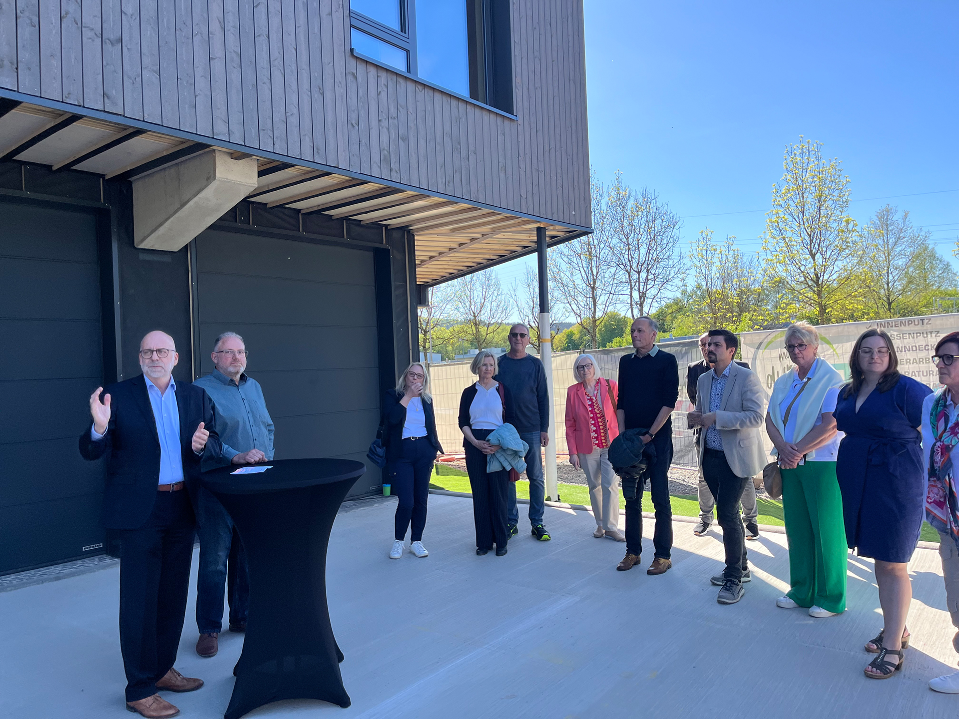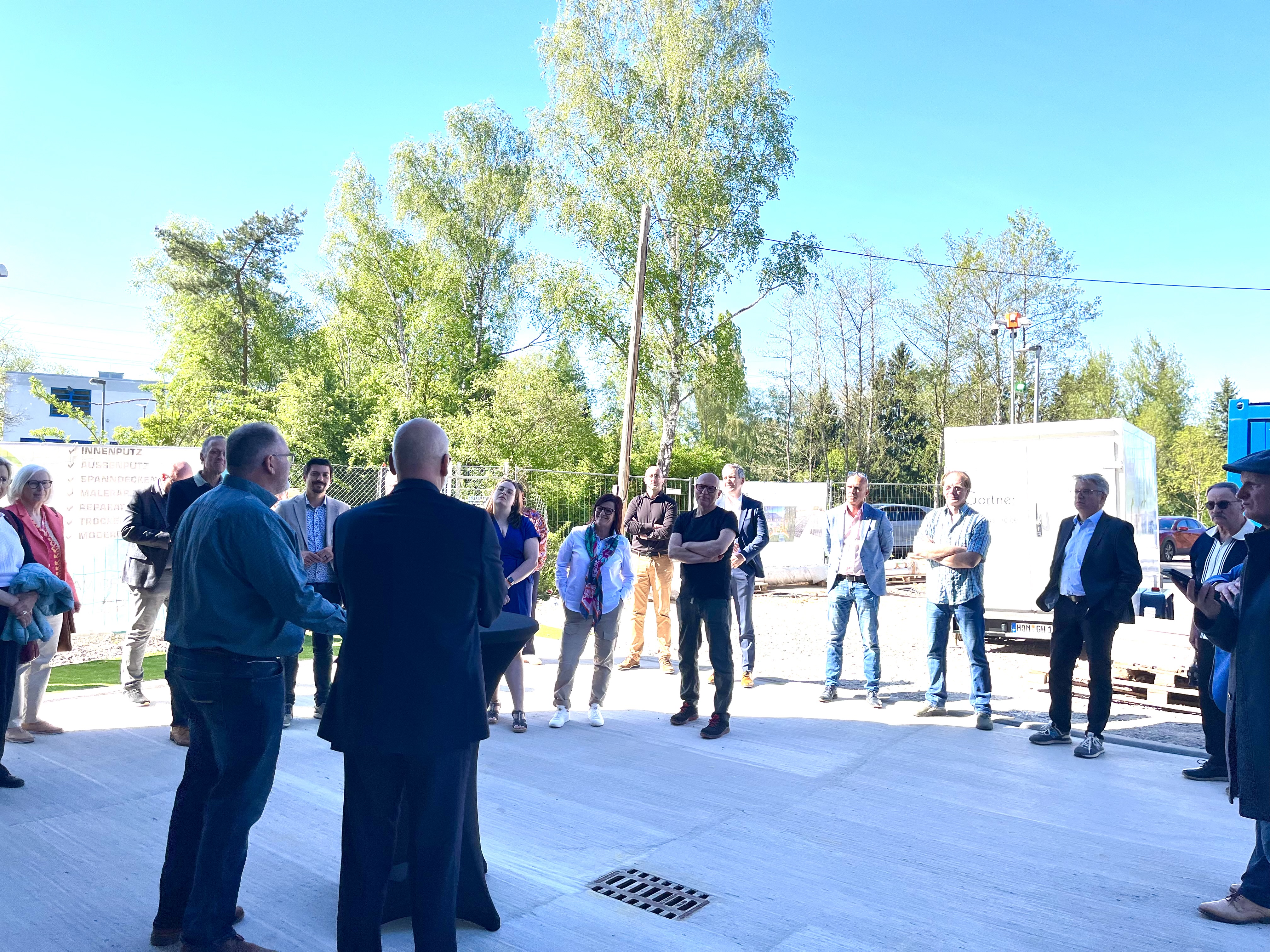 Bereits im April 2025 hatten die Bauarbeiten begonnen, nachdem die Planung im Rahmen einer Funktionalausschreibung im März 2024 in die Beauftragung des Generalübernehmers Drei Tannen Haus GmbH mündete. Trotz einer mehrmonatigen Genehmigungsphase konnte das Gebäude planmäßig im April 2026 fertiggestellt werden. Kleinere Restarbeiten sowie die Gestaltung der Außenanlagen folgen im Sommer.