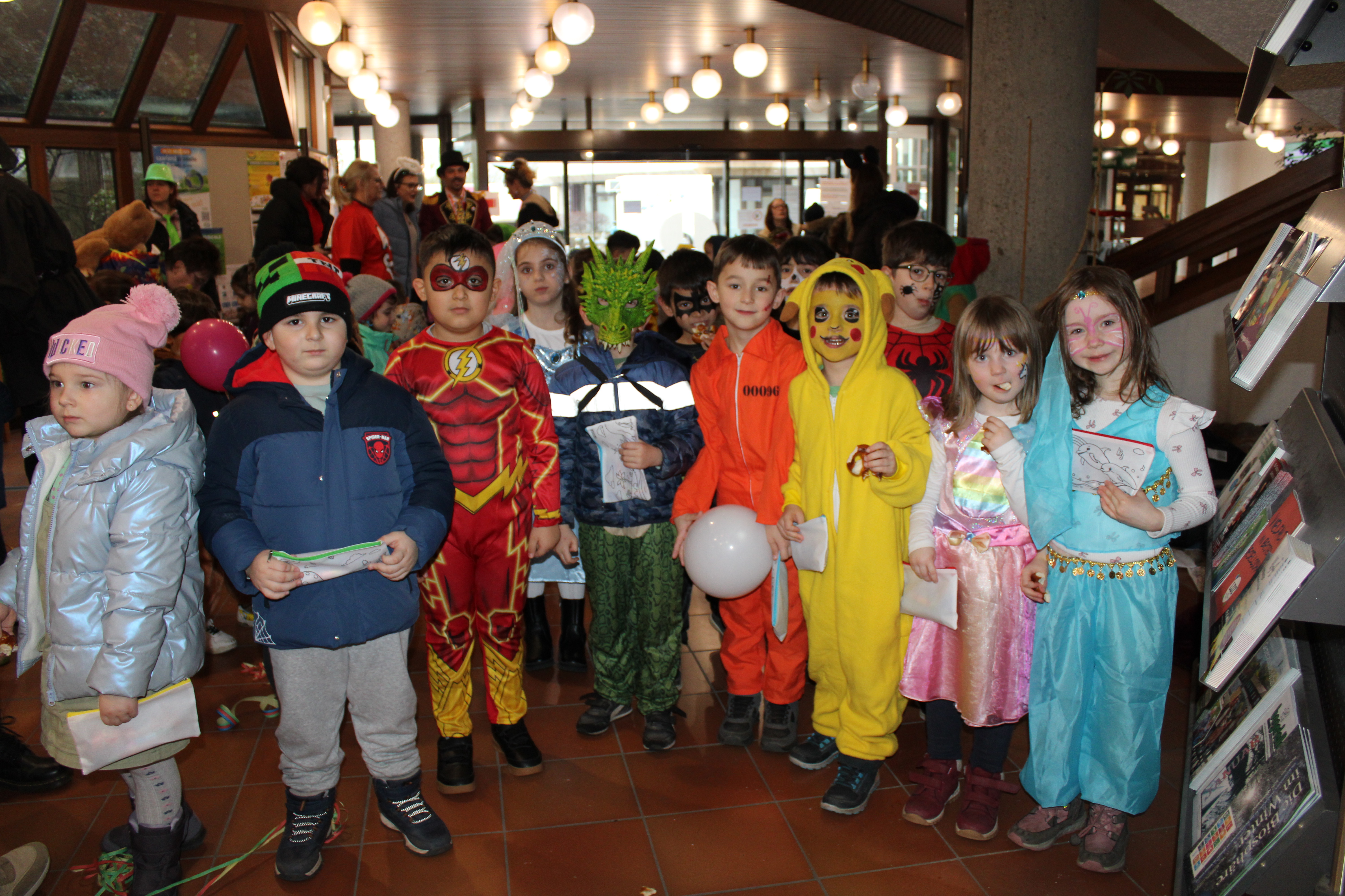 Bürgermeister Manfred Rippel und der Beigeordnete Philipp Scheidweiler begrüßten als Hausmeister und Zirkusdirektor die kleinen Fastnachter und sangen und tanzten mit den vielen Gästen, die verkleidet und geschminkt als Feen, Clown, Prinzessinnen, Drachen und Superhelden oder Pikachu herrlich anzuschauen waren. Mit Mitmachliedern sorgten sie schnell für eine tolle Stimmung und mit jeder Menge Lachen, Jubel, Luftballons und Luftschlangen wurde das Foyer des Rathauses kurzerhand in eine Faschingshochburg verwandelt.