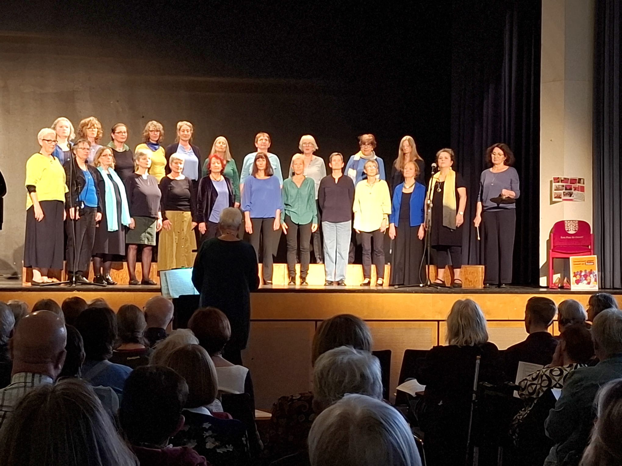 Mit „Trio Musicale“ gelang dem Chor ein musikalischer Brückenschlag mit seinem Lieder-Repertoire. Eindrucksvoll spiegelte dieser die Vielfalt weiblicher Stimmen und Perspektiven wider. Das Repertoire umfasste französische Chansons, bretonische und kraftvolle georgische Volkslieder bis hin zu deutscher Chorliteratur.