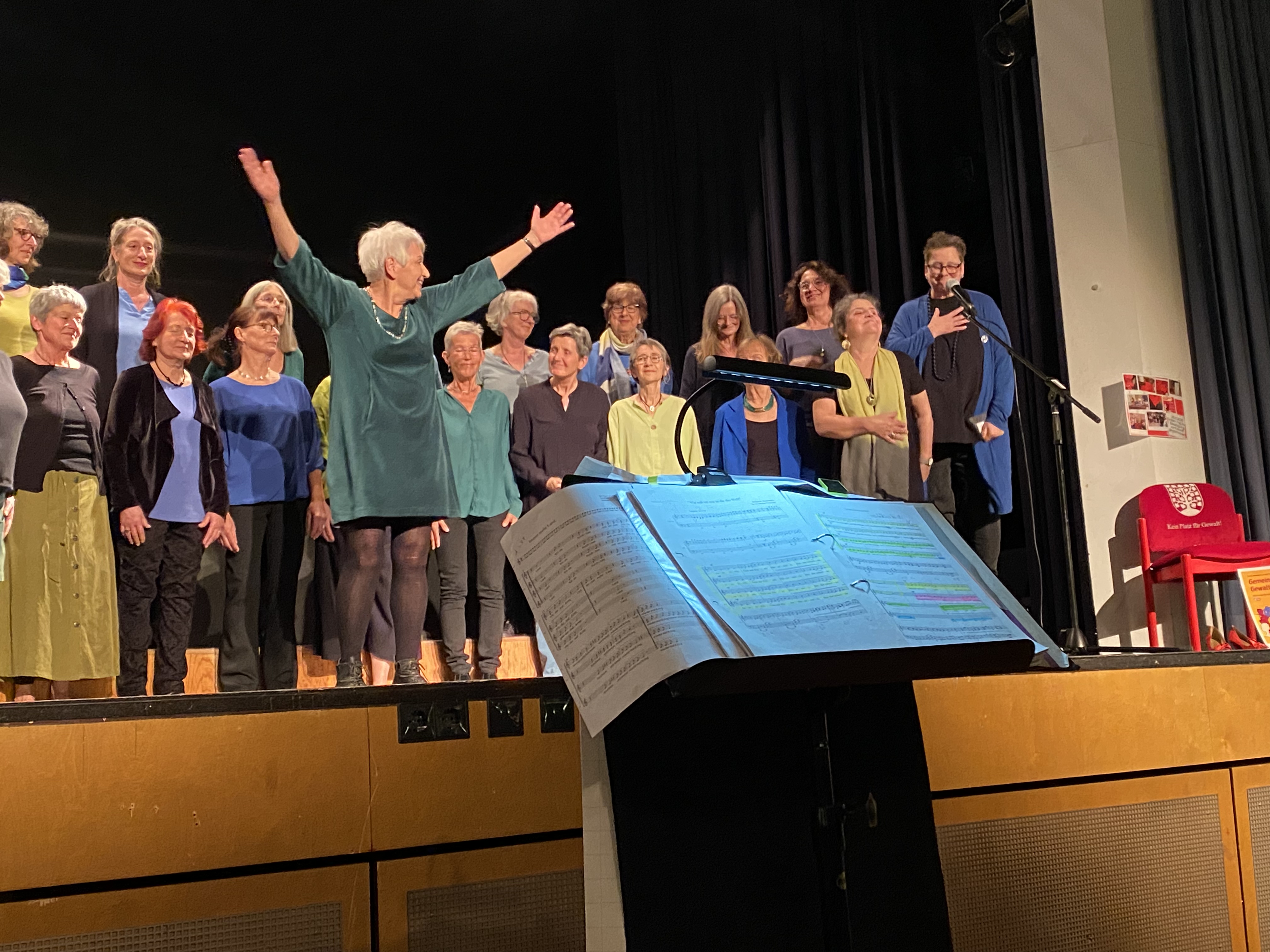 Für die Zugabe mit einer eigens für den Chor komponierten Hymne bedankten sich die Zuhörerinnen und Zuhörer mit stehendem und langanhaltendem Applaus.