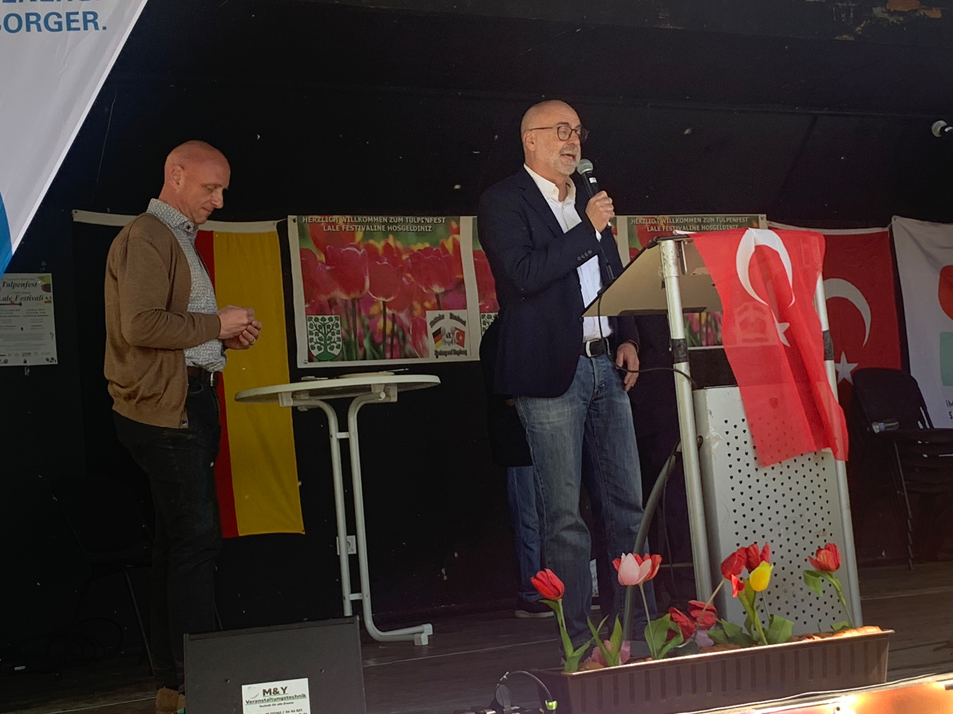 Bild 3: Klaus Friedrich (l.) und Nurettin Tan (r.) erinnerten in ihren Ansprachen an die Anfänge des Tulpenfests und hoben hervor, wie sich die Veranstaltung zu einem lebendigen Fest der Begegnung entwickelt hat,