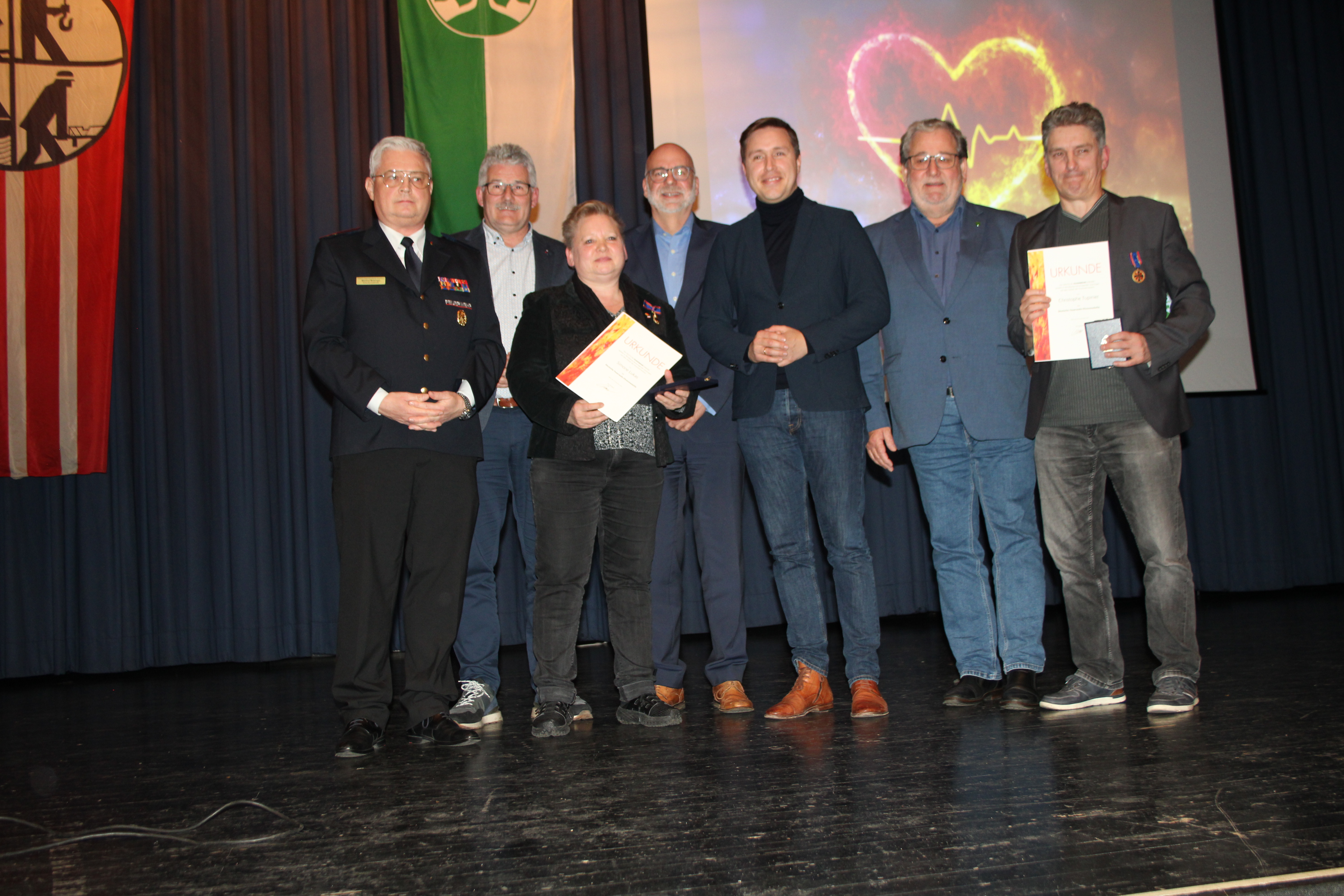 Zum Auftakt gab es eine besondere Ehrung für Simone Lukas und ihren Partner Christophe Tupinier für ihren außergewöhnlichen Einsatz, mit dem sie sich seit zehn Jahren für die Partnerschaft der Feuerwehren Homburg und La Baule und einen regen Austausch auf dieser Ebene engagieren. Simone Lukas, sie ist für die Stadt auch zuständig für die Partnerschaft zwischen beiden Städten, und Christophe Tupinier erhielten die Ehrennadel des Deutschen Feuerwehrverbandes. Im Zusammenhang mit dieser aktiven Partnerschaft wurden auch vier besonders verdiente Feuerwehrmänner ausgezeichnet.