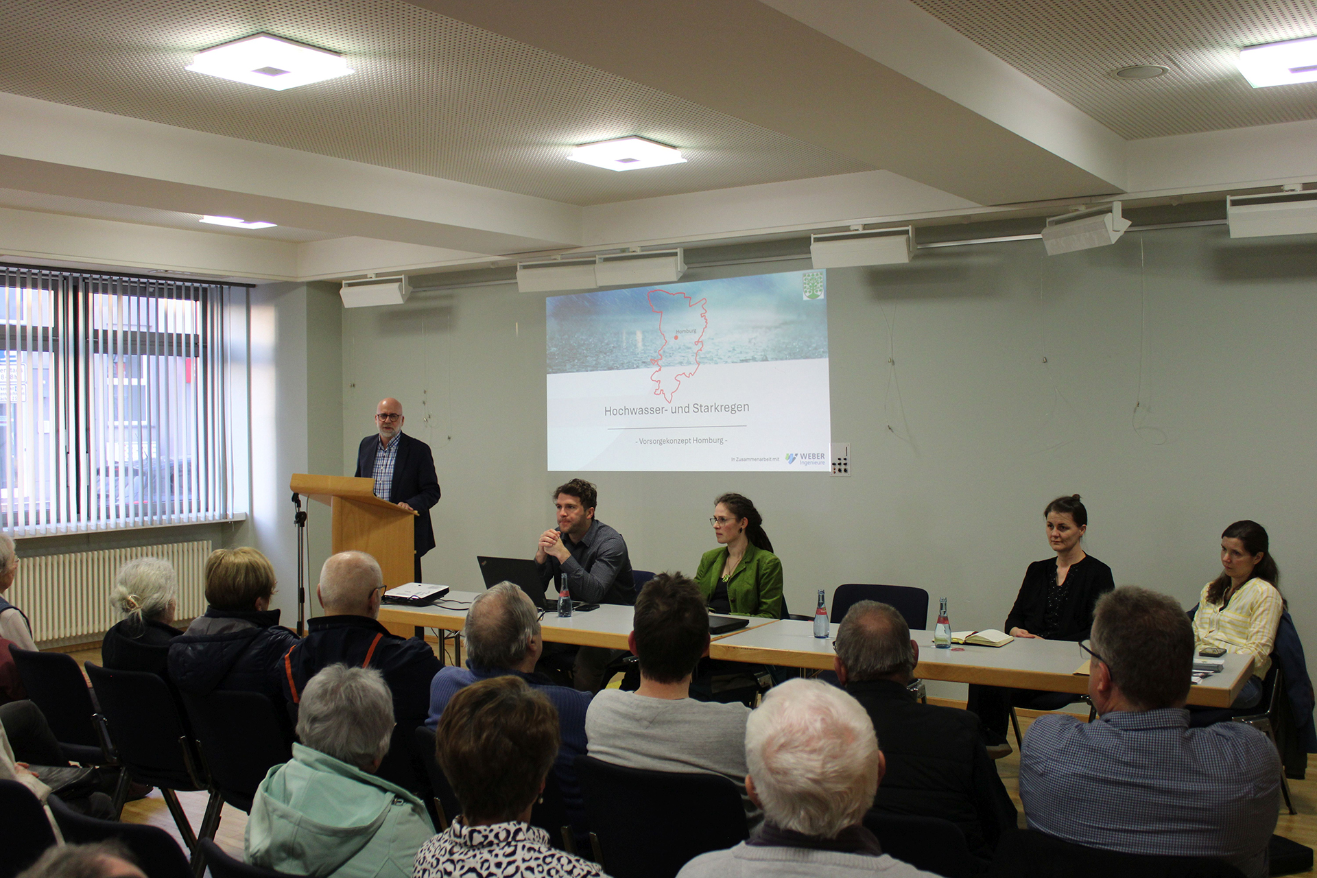 Die Starkregen- und Hochwasserereignisse der vergangenen Jahre haben gezeigt, dass der Klimawandel zu schwer vorhersehbaren Gefahren führen kann. Daher hat die Stadtverwaltung Homburg in der jüngsten Vergangenheit ein Hochwasser- und Starkregenvorsorgekonzept entwickelt. Dieses wurde kürzlich in der Galerie im Saalbau öffentlich vorgestellt. Oberbürgermeister Michael Forster begrüßte zu Beginn die zahlreichen Gäste, dankte für ihr Interesse und führte in das Thema ein.